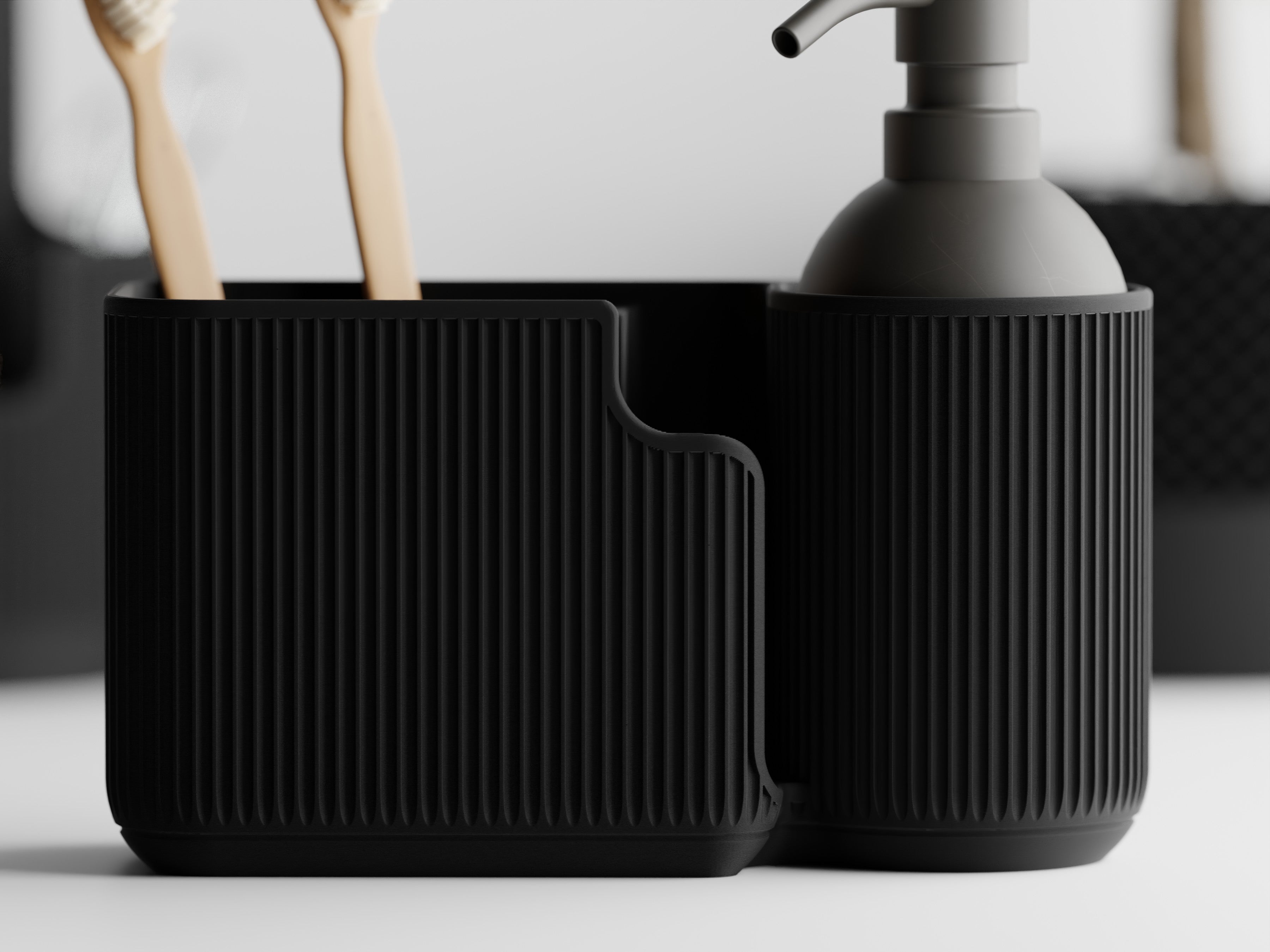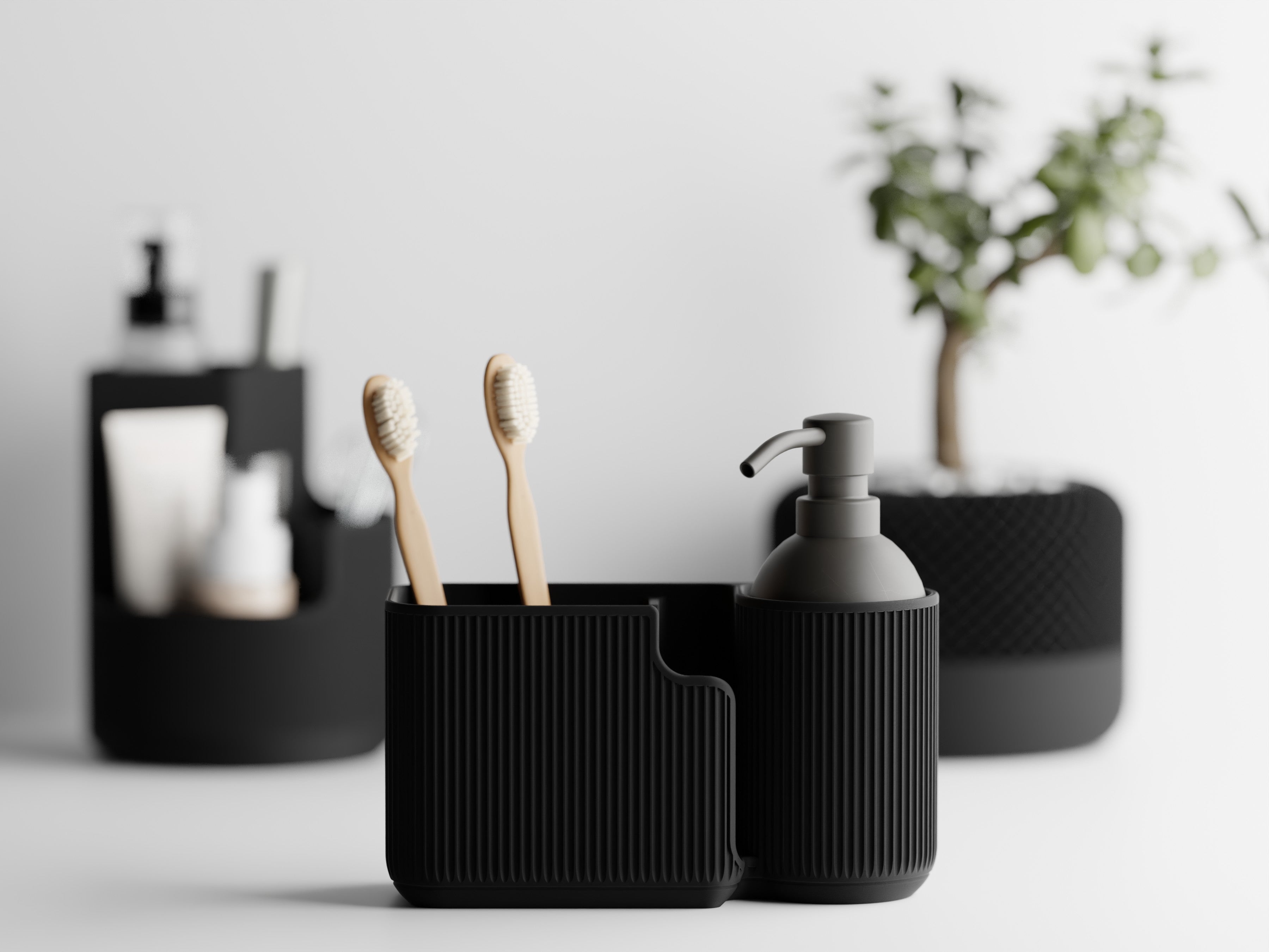 Duoridge è il set da bagno perfetto per chi apprezza il design coordinato e la funzionalità quotidiana. Composto da un elegante portaspazzolino e da un dispenser di sapone abbinato con pompa, questo duo si distingue per la sua superficie a coste verticali che aggiunge ritmo, equilibrio e un tocco moderno a qualsiasi bagno. Stampato in 3D in PLA , è una scelta sostenibile e raffinata, ideale per interni moderni, nordici o minimalisti . Il suo design compatto si adatta anche a spazi ridotti, mantenendo tutto in ordine con stile.