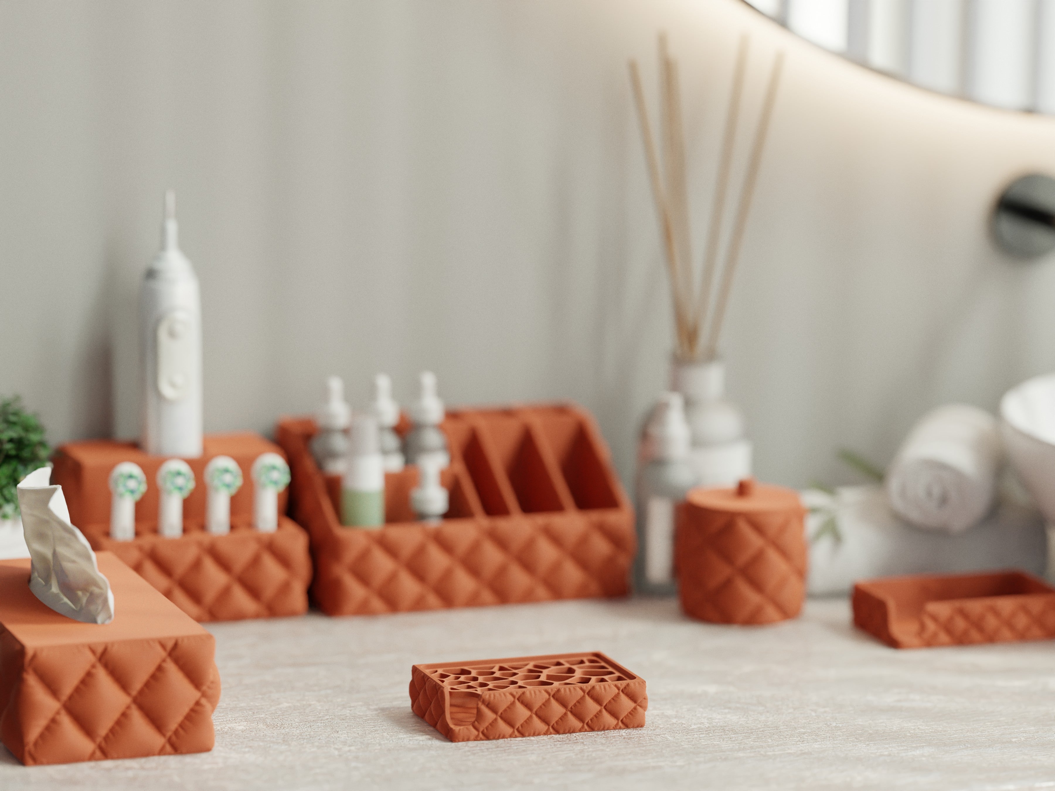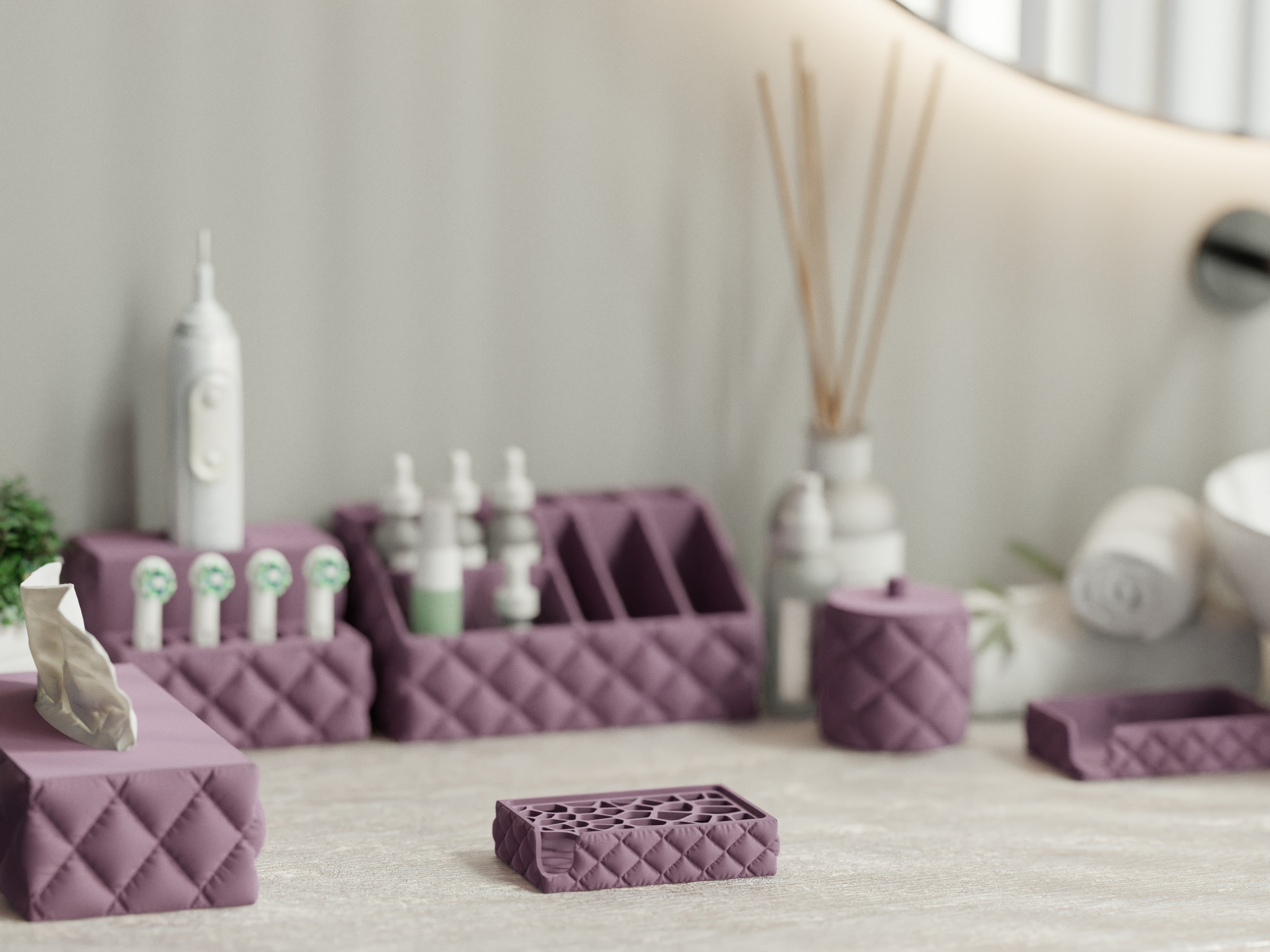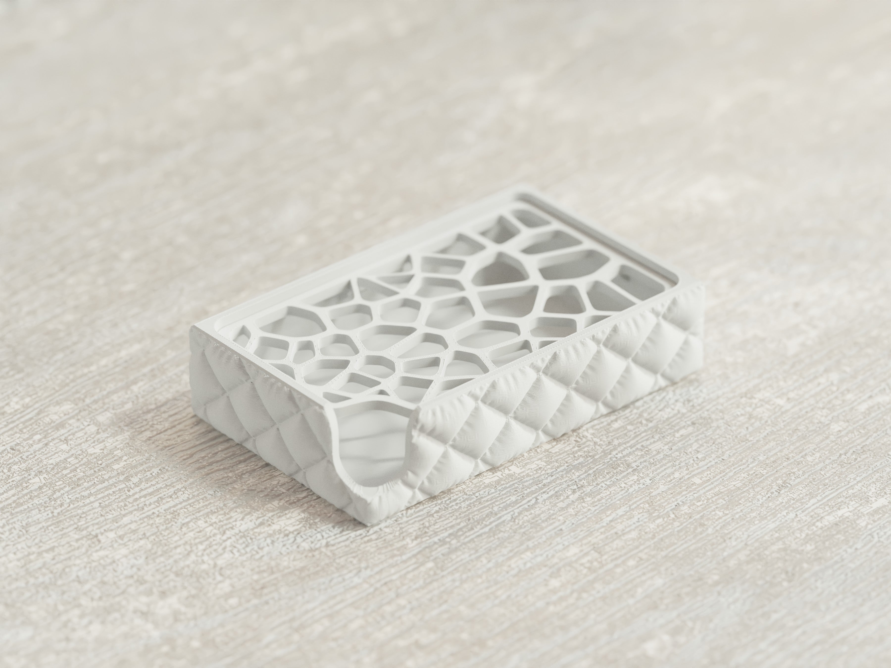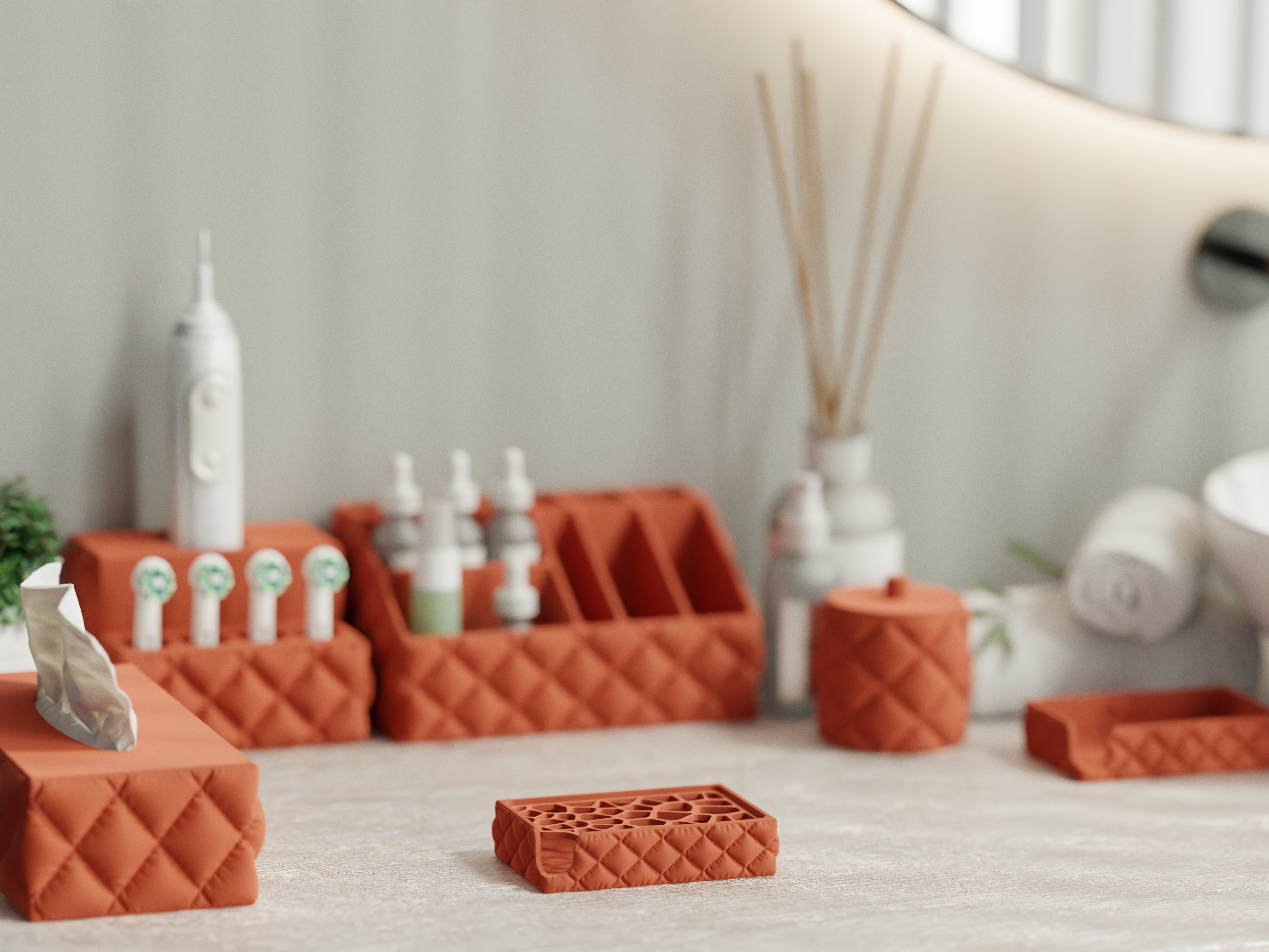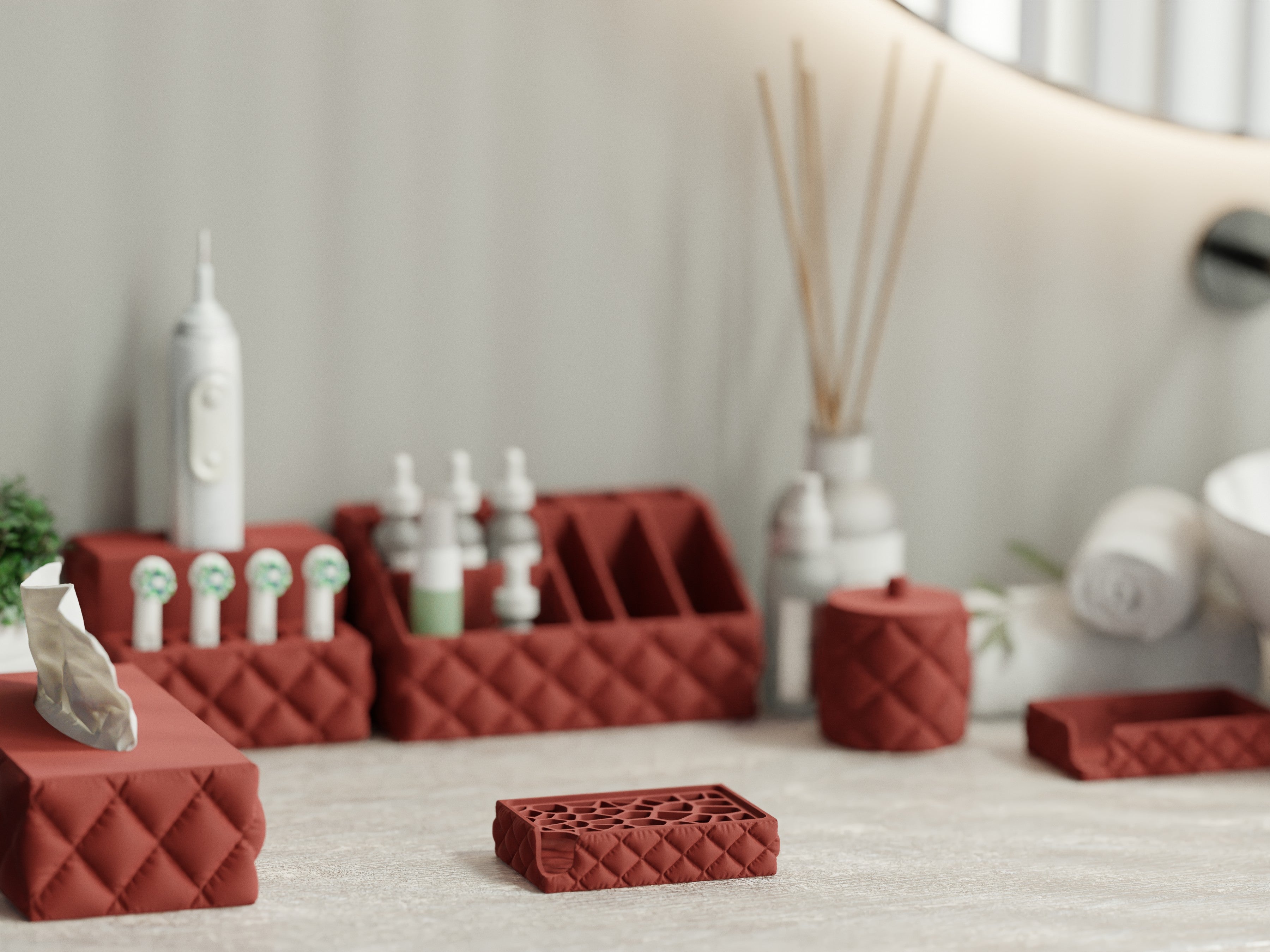 Il portasapone SoftQuilt coniuga funzionalità e raffinatezza in un oggetto compatto dalla forte presenza visiva. La sua texture trapuntata, ispirata ai tessuti imbottiti di alta gamma, aggiunge un tocco di morbida eleganza e raffinatezza a qualsiasi bagno. La base forata permette all'acqua di drenare facilmente, mantenendo il sapone asciutto più a lungo e la superficie pulita. Perfetto per chi presta attenzione a ogni dettaglio, questo accessorio impreziosisce il bagno con uno stile discreto e un fascino moderno.