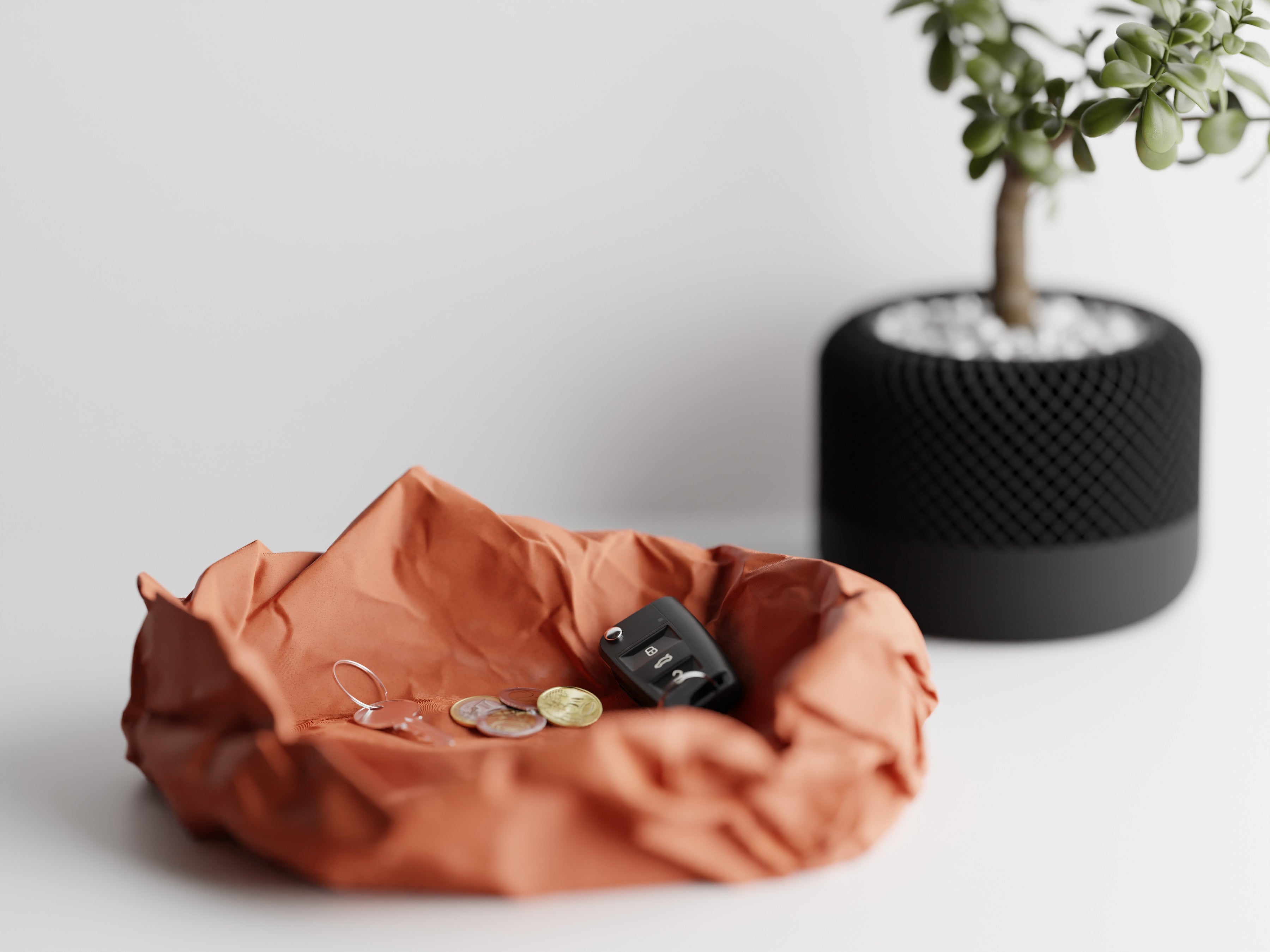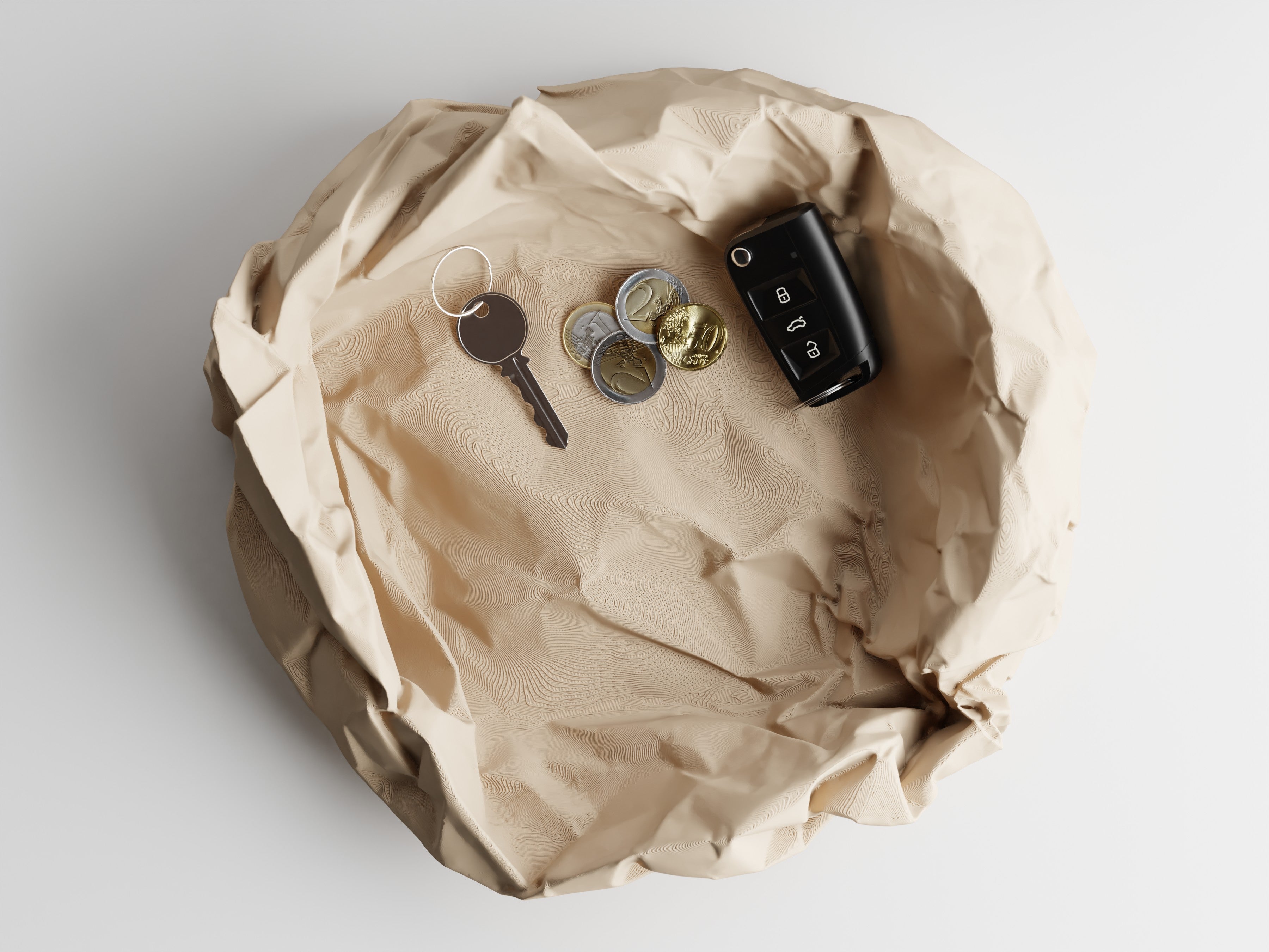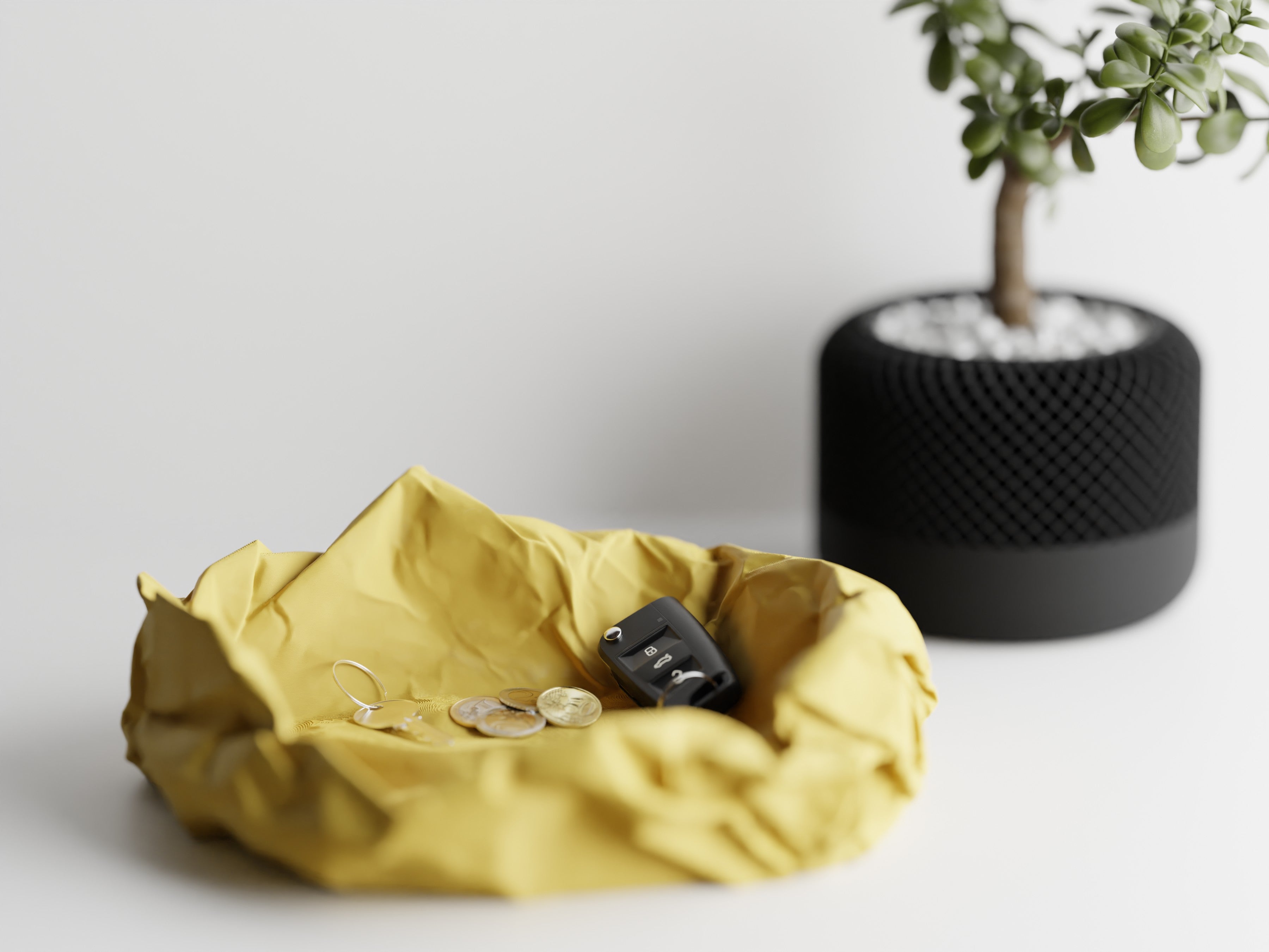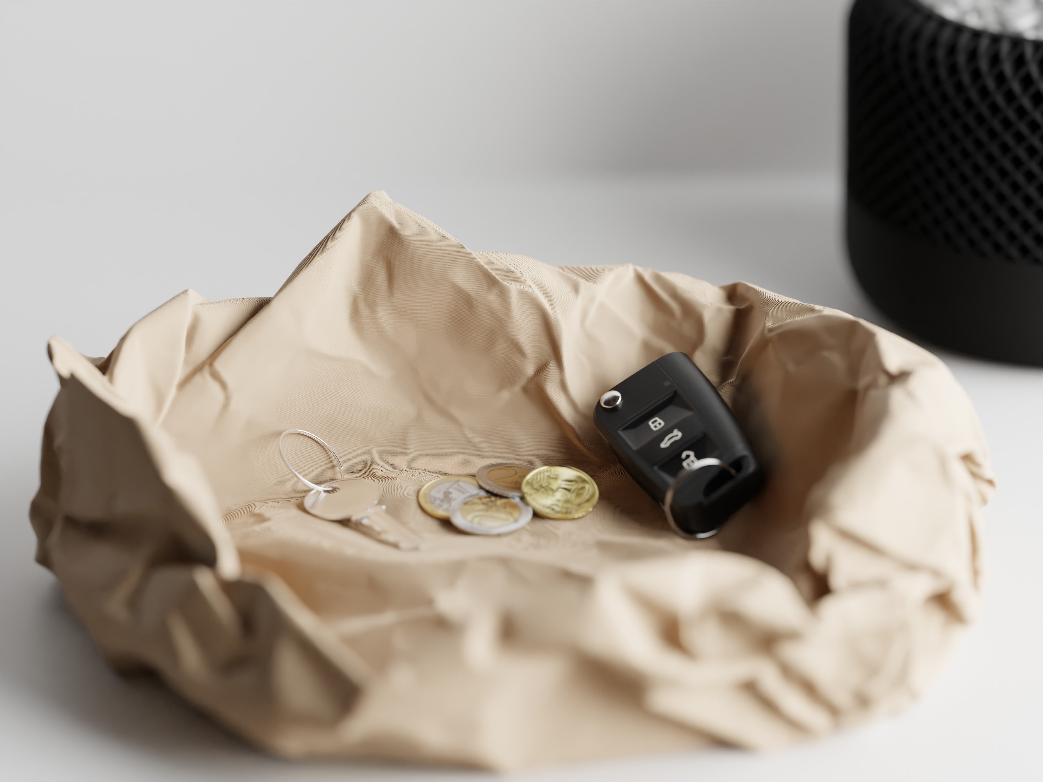 Il vassoio Crumple trasforma un gesto quotidiano in un elemento di design. Ispirato alla forma irregolare di un foglio di carta accartocciato, fonde ironia e funzionalità in un oggetto unico e accattivante. Realizzato in resistente PLA con stampa 3D di precisione, contiene con stile chiavi, monete e piccoli oggetti essenziali: un elemento decorativo perfetto per ingressi, scrivanie o comodini. Un pezzo che non passerà inosservato, ideale per spazi moderni e creativi.